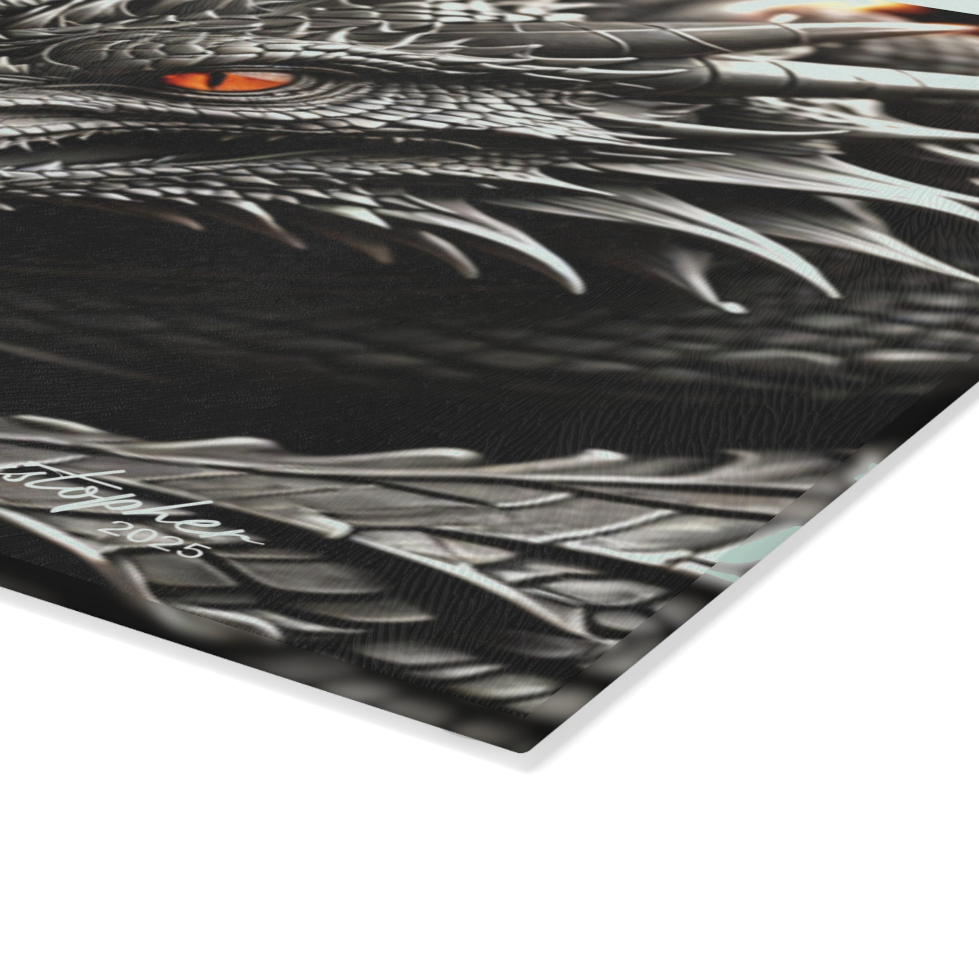 Elevate your culinary experience with our stunning glass cutting board. Featuring a mesmerizing dragon design, this product adds a touch of artistry to your kitchen while providing a functional surface for meal prep. Crafted with vibrant colors and a durable tempered glass material, it promises longevity and style. Whether you're an avid chef or a casual home cook, this cutting board brings an enchanting vibe to your kitchen, making it a great gift for birthdays, housewarmings, or any culinary occasions. Perfect for fantasy lovers and cooking enthusiasts alike!